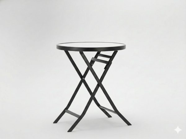 - Okrągły stół ogrodowy składany z solidnej stali, z eleganckim czarnym blatem ze szkła hartowanego 5 mm. Idealny na balkon, taras i do ogrodu. Stabilna konstrukcja, odporność na warunki atmosferyczne oraz oszczędność miejsca.
