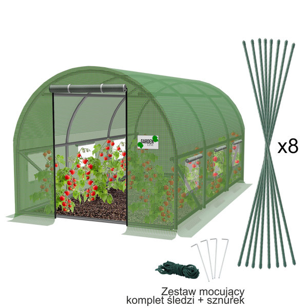 Accesorii: puncte de întărire, sfoară, 2 tuburi pentru plante cățărătoare, 8 țevi 11 × 120 cm