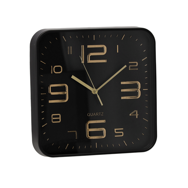ZEGAR WISZĄCY KWADRATOWY 30,2 x 30,2 x 4,3 CM CZARNY ZE ZŁOTYMI CYFRAMI *4696