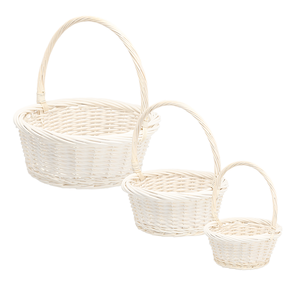 ZESTAW 3 KOSZYKÓW RATTANOWYCH Z RĄCZKĄ – BIAŁY