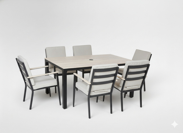 Ten 7-elementowy zestaw (stół + 6 krzeseł) został zaprojektowany z myślą o wspólnych posiłkach, rodzinnych spotkaniach i relaksie na świeżym powietrzu ☀️🍽️