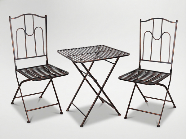 - Elegancki zestaw mebli ogrodowych w kolorze antycznego brązu. Stół kwadratowy i 2 krzesła wykonane ze stali galwanizowanej malowanej proszkowo. Trwały, stylowy i idealny na balkon, taras lub do ogrodu.