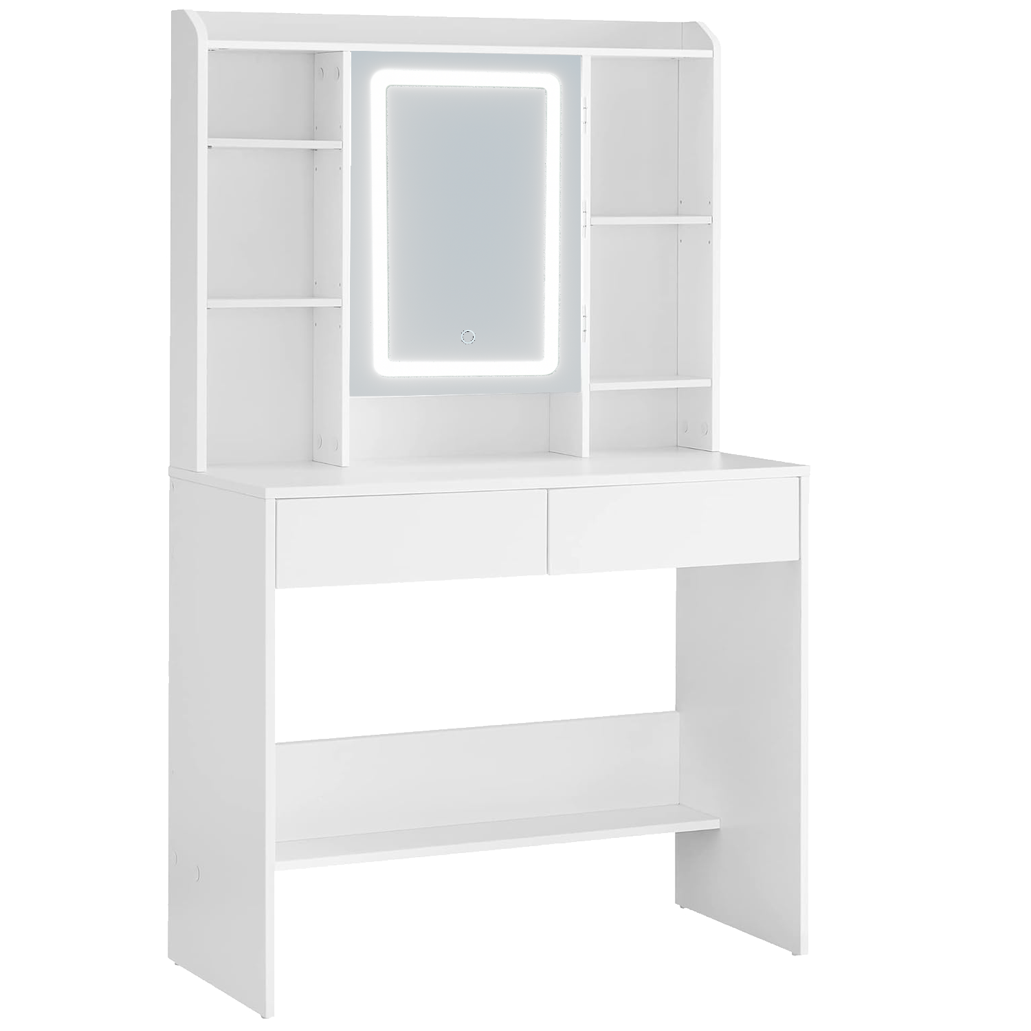 ⭐ Kozmetický toaletný stolík biely s LED zrkadlom a poličkou na šperky ⭐