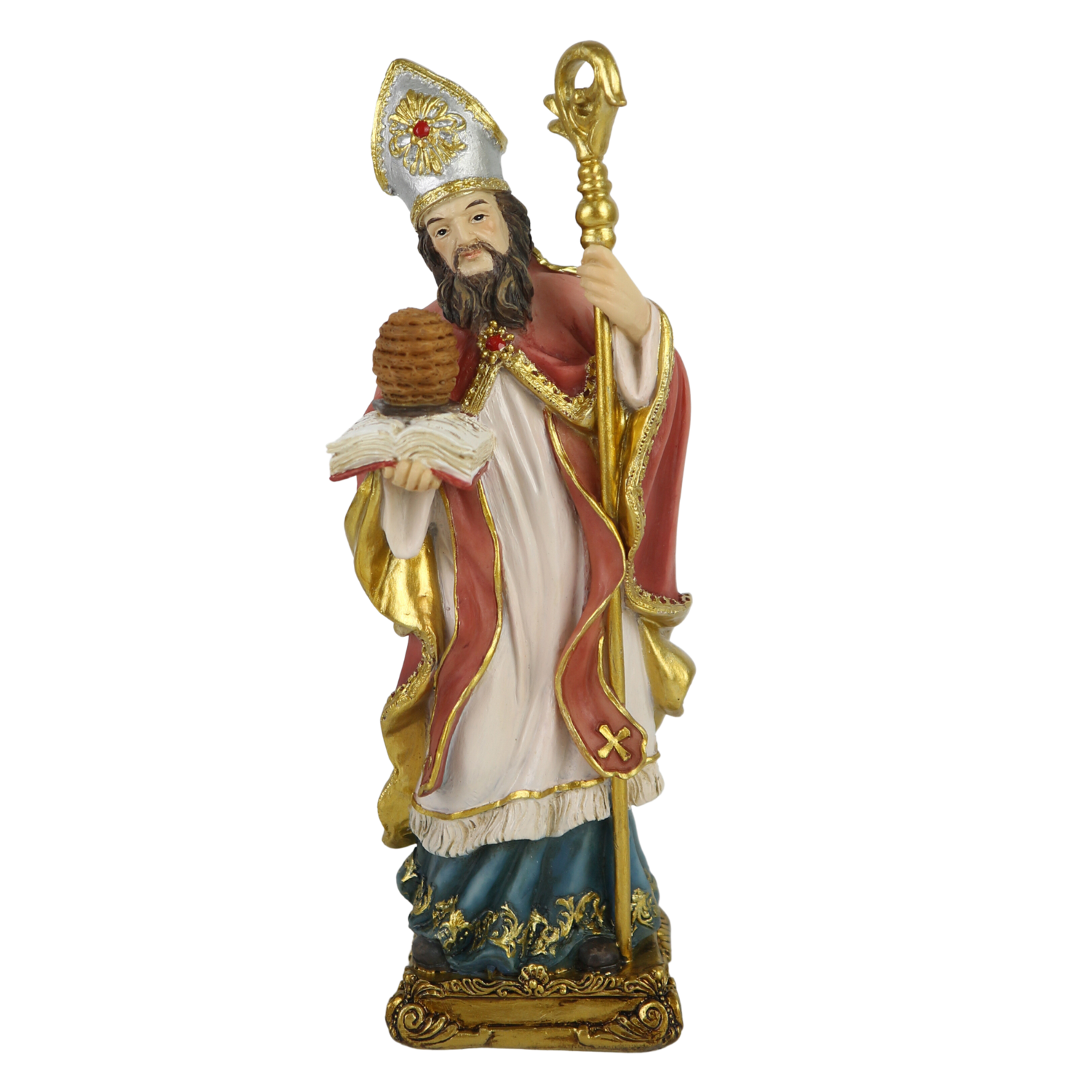 Objavte výnimočnú figúrku Sv. Ambroža – biskupa a doktora cirkvi, ktorej prítomnosť dodá duchovný charakter každej priestoru. Ideálne sa osvedčí ako ozdoba domácich oltárikov, kaplniek, vianočných jasličiek alebo interiérov kostolov.