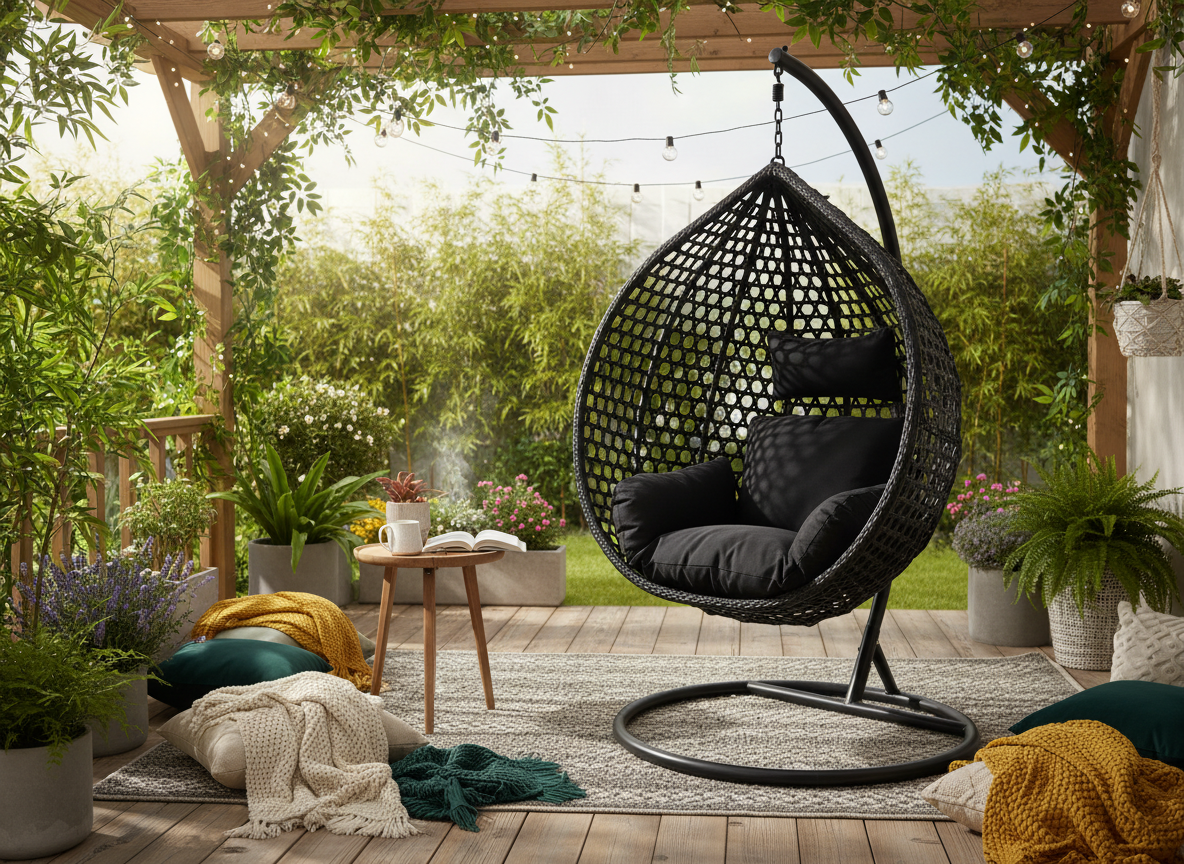 Fotel wiszący – czarna elegancja w nowoczesnym wydaniu 🖤🪑