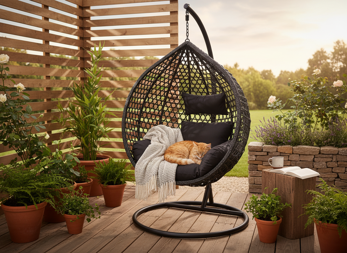 - 🧘♀️ Przestronny i wygodny kosz – idealny do relaksu na świeżym powietrzu