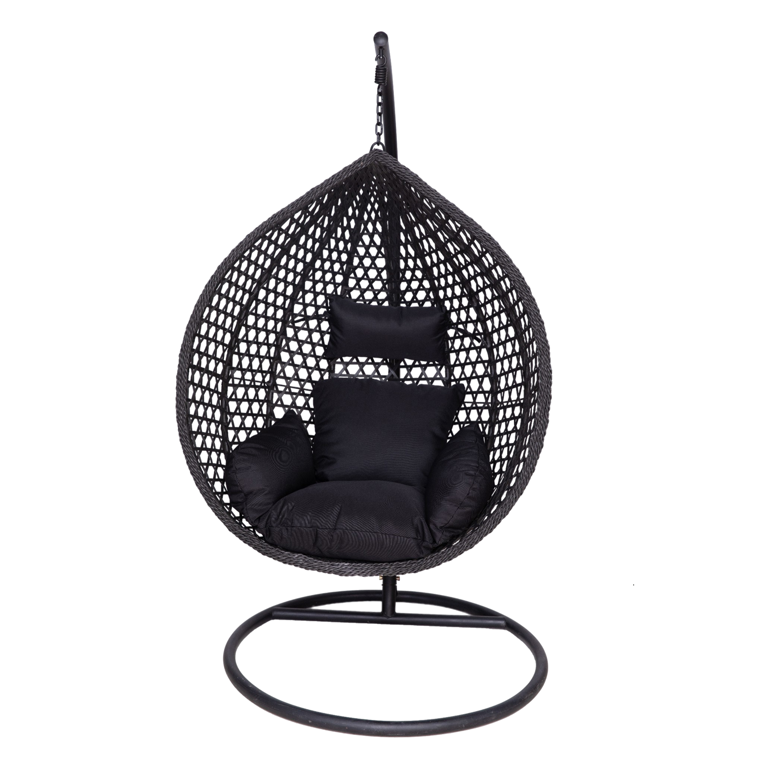 FOTEL WISZĄCY CZARNY, PODUSZKA - CZARNA, RAMA - CZARNA 107 x 68 x 120 CM