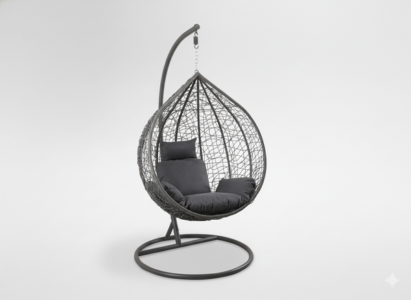 Stylowy, wygodny i idealny na długie chwile wypoczynku – ten wiszący fotel w rozmiarze L łączy nowoczesny design z komfortem, na który zasługujesz. W jednolitym, ciemnoszarym wykończeniu prezentuje się niezwykle elegancko i pasuje do każdej aranżacji.