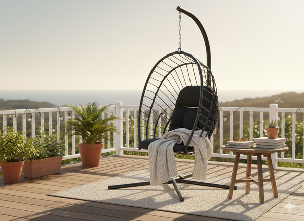 Fotel wiszący ERIS to doskonałe połączenie komfortu i stylu. Dzięki składanemu koszowi oraz solidnej stalowej konstrukcji idealnie sprawdzi się zarówno w ogrodzie, na tarasie, jak i we wnętrzu domu. Jego elegancki wygląd wpasuje się w każdą aranżację.