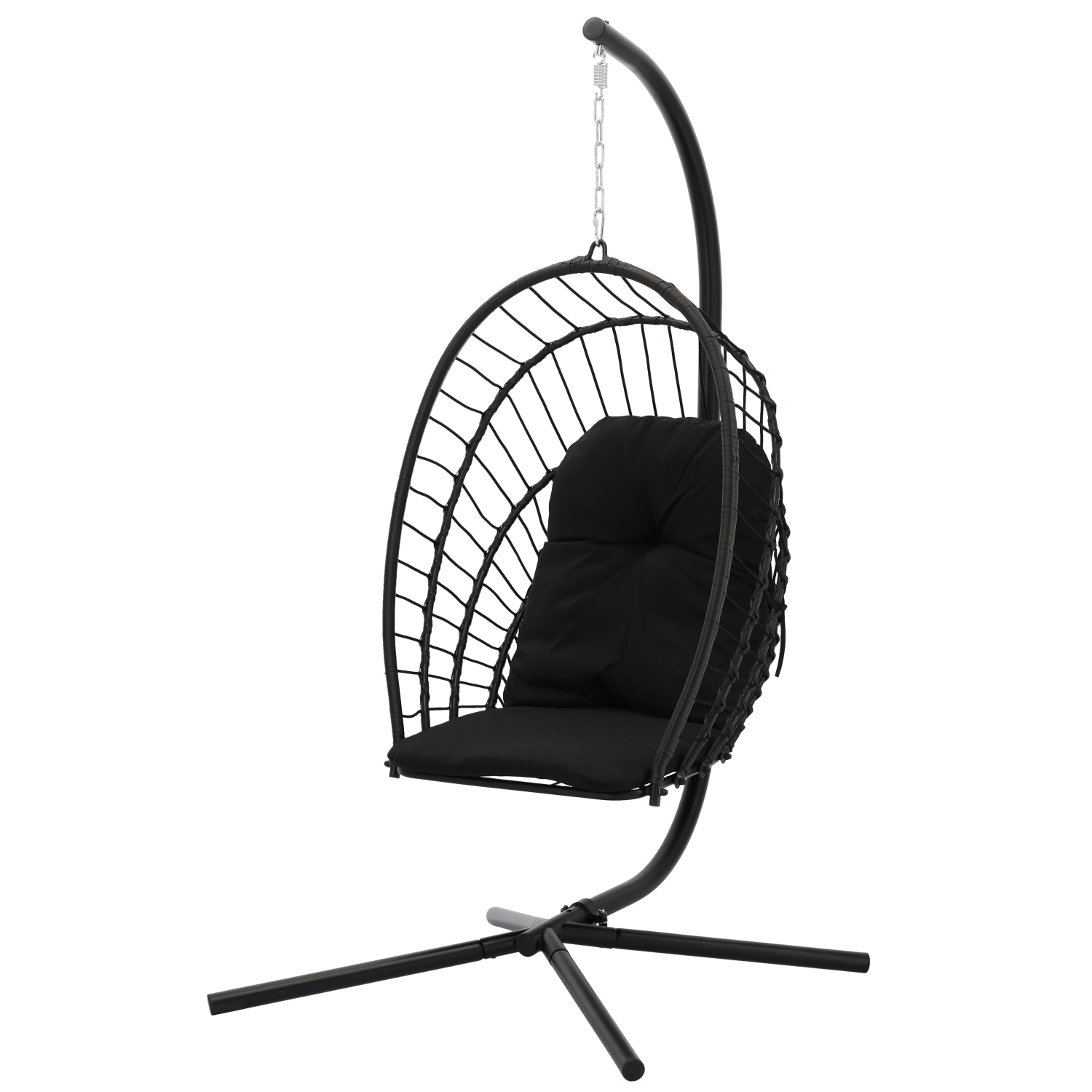 FOTEL WISZĄCY SKŁADANY ERIS CZARNY, PODUSZKA - CZARNA, RAMA - CZARNA