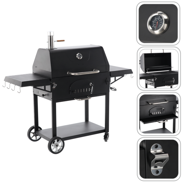 GRIL WÄGLOWÝ "VULCANO" S KAPACÍ, LIATYNOVÝM ROŠTOM A KOLIESKAMI 153 x 65 x 137 CM *5221