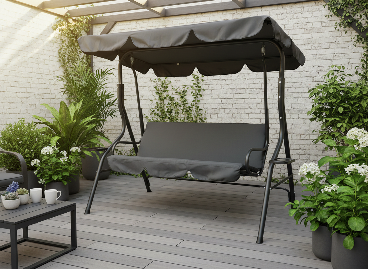 Elegancka huśtawka ogrodowa w odcieniu antracytu to świetne rozwiązanie dla osób, które chcą połączyć styl z funkcjonalnością. Minimalistyczny design i solidna konstrukcja sprawiają, że mebel nie tylko świetnie wygląda, ale też służy przez lata.