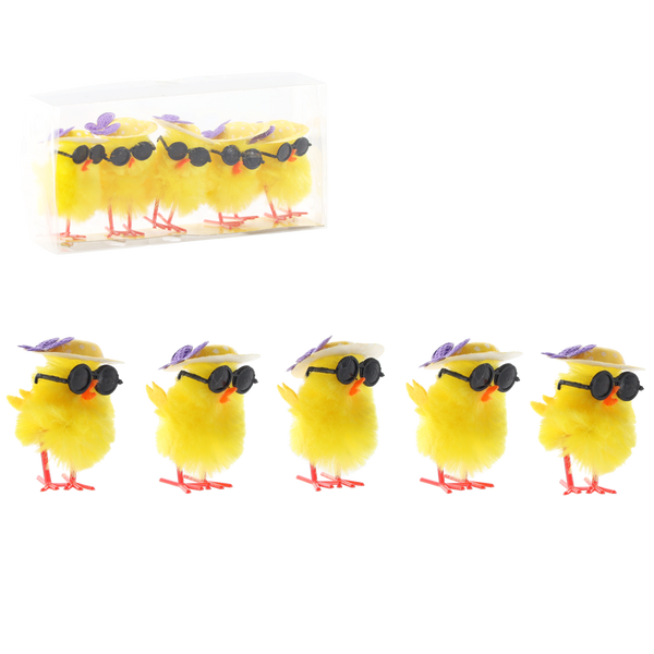 KPL. 5 VEĽKONOČNÝCH DEKORÁCIÍ - KURČATÁ V OKULIARE 12 x 3,5 x 5 CM *9304