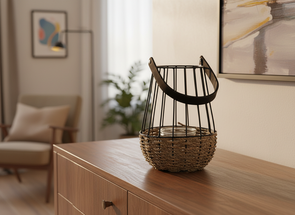Stwórz niepowtarzalny klimat w swoim wnętrzu dzięki eleganckiemu lampionowi w kolorach czerni i brązu. Jego klasyczny design sprawia, że pasuje zarówno do nowoczesnych, jak i rustykalnych przestrzeni.