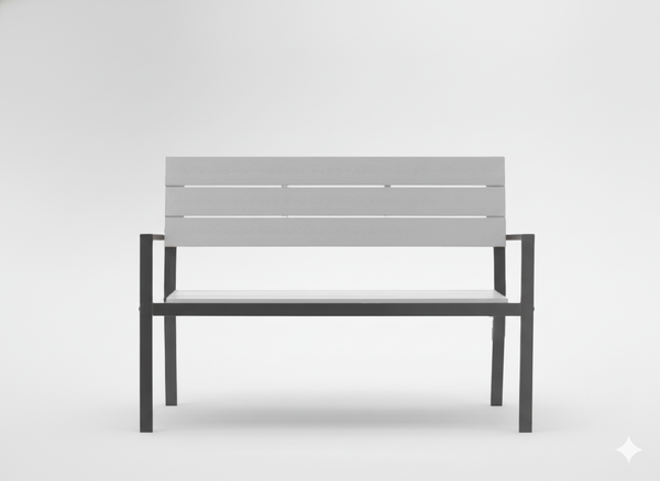 - Szara ławka ogrodowa Garden Line 118x54x77 cm z solidną stalową ramą i wygodnym oparciem. Trwała, elegancka i komfortowa. Idealna do ogrodu, na taras lub działkę. Maksymalne obciążenie 150 kg.