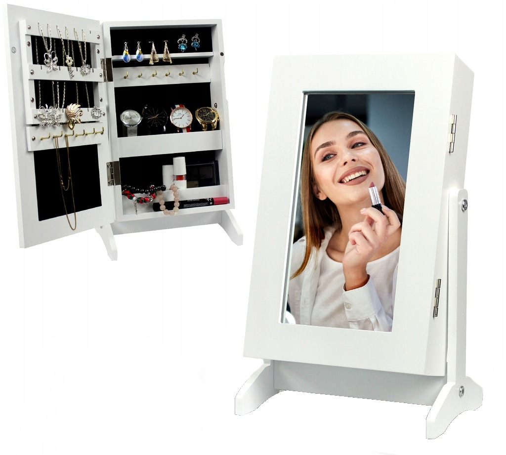 Skriňa so zrkadlom na šperky je určitevýborný nápad na darček pre každú ženu. Pojme veľké množstvonáhrdelníkov, prsteňov, náramkov a hodiniek.Čalúnený interiér pridáva šarm a eleganciu, avonkajšie zrkadlo to, ako všetci vedia, je povinná položka v každej spálni.