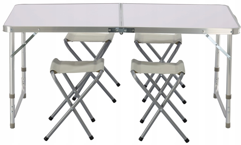 Ideálny na výlety, dovolenky, pikniky, kempovanie, predaj na cestách. Vyrobený z materiálov vysokej kvality (hliník + laminát), čo ho robí mimoriadne odolným voči všetkým poveternostným podmienkam, a vďaka svojej dĺžke 120 cm sa pri ňom zmestí veľká rodina, hostia. Vďaka nastaviteľnej výške od 55 cm do 70 cm si prispôsobíme komfort používania stolíka. Po zložení stolíka získame pohodlný na transport kufrík.