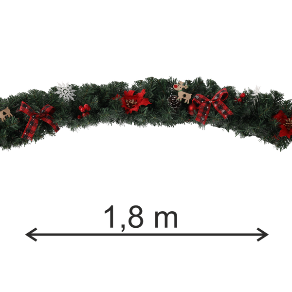 VÁNOČNÁ OZDOBY - GIRLANDA 1,8 M ČERVENÁ S POINSETTIÍ *2569