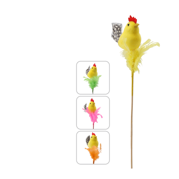 VEĽKONOČNÁ DEKORÁCIA NA ŠPÍZE - KURIATKO NA PERÁCH 6 x 23 CM MIX 4 FARIEB bal=12ks *9519