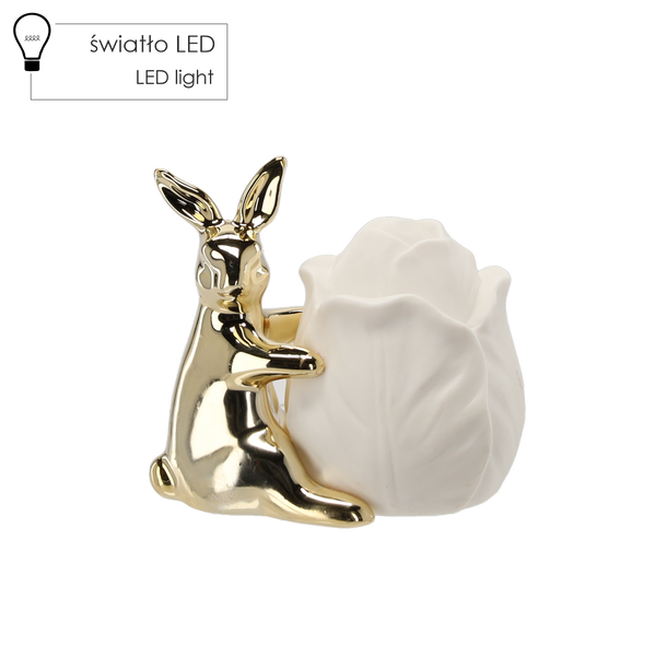 VEĽKONOČNÁ FIGÚRKA - ZLATÝ KERAMICKÝ ZAJKO S KVETOM 9,8 x 7,5 x 9,7 cm LED balenie=4ks *9903