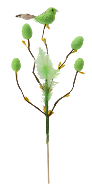 VEĽKONOČNÁ OZDOBNÁ ZÁPICH - VETVIČKA S PTÁČIKOM A VAJÍČKAMI 24 CM MIX 4 FARIEB *9571