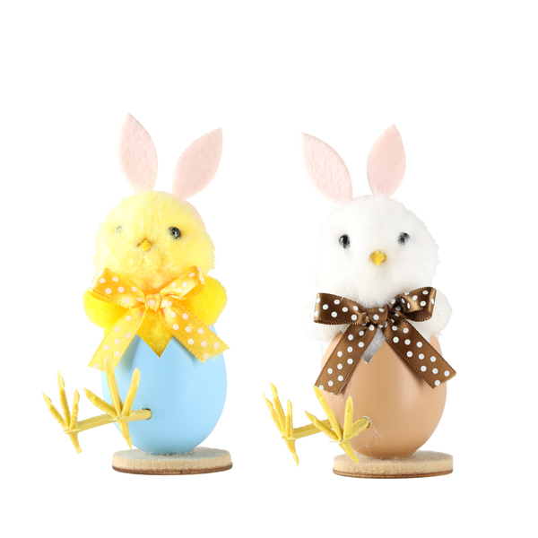 VEĽKONOČNÁ VÝZDOBE - KURČA V ŠKRUPINE S UŠIAMI 5 x 11 CM MIX 2 FARIEB bal=12ks *8932