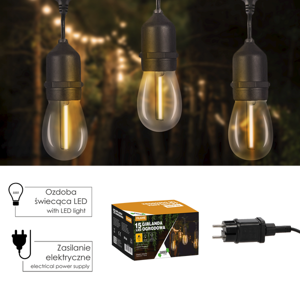 ZÁHRADNÁ REŤAZ S DIAĽKOVÝM OVLÁDANÍM 24 V DĽ. 3 + 15 M FILAME 15 LED TEPLÁ BIELA *6242