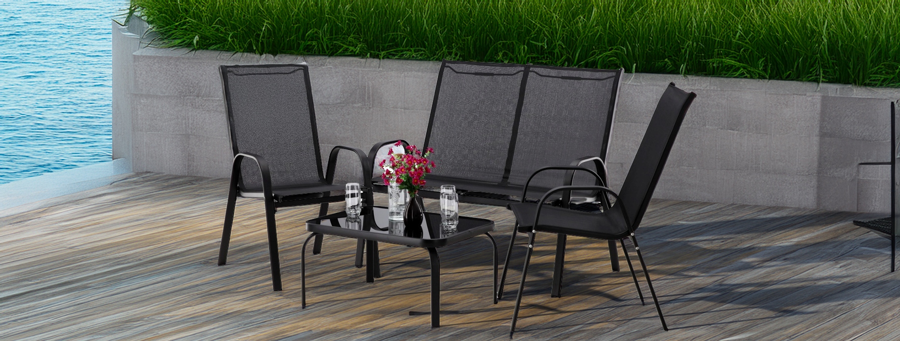 Sada záhradného nábytku značky GARDENLINE je ideálna pre tých, ktorí hľadajú kombináciu klasiky a elegancie. Jednoduchý tvar a štýlová pletenina . Hodí sa do každého priestoru - na balkón, terasu alebo do záhrady. Stolik s tvrdeným sklom so vzorom priehľadnej mozaiky (na samostatnú montáž) určite umožní dlhoročné používanie. Poťah je vyrobený z husté, napnutej pleteniny na ráme. Perfektne sa hodí do tichého prostredia domovej záhrady, aj na komerčné plochy.