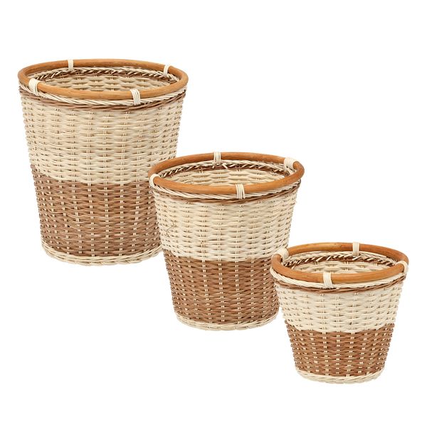 ZESTAW 3 KOSZYKÓW RATTANOWYCH – NATURALNY Z BIAŁYM