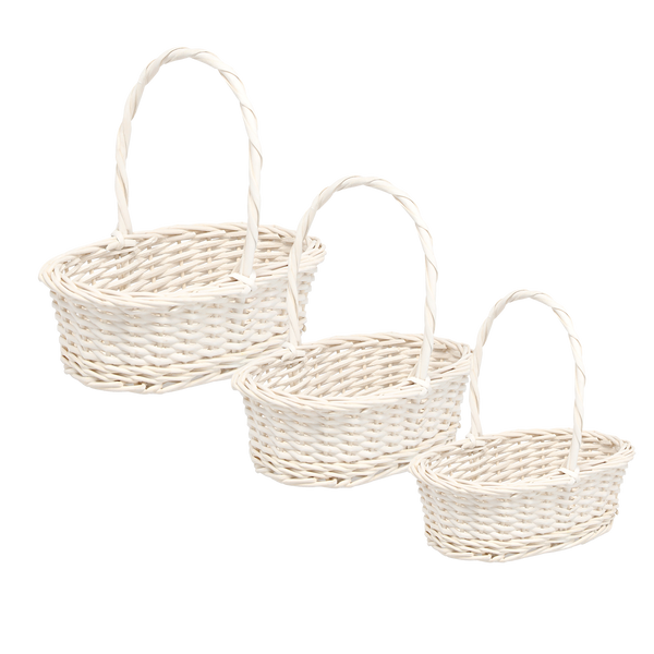 ZESTAW 3 KOSZYKÓW RATTANOWYCH Z RĄCZKĄ – BIAŁY