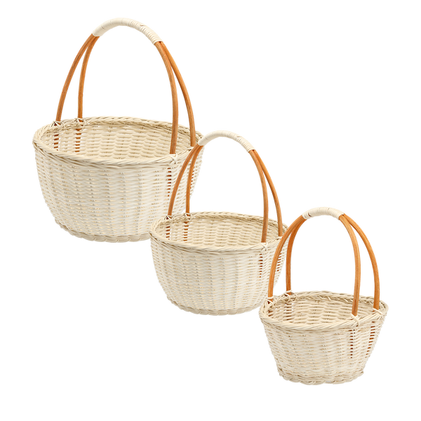 ZESTAW 3 KOSZYKÓW RATTANOWYCH Z UCHWYTEM – BIAŁY